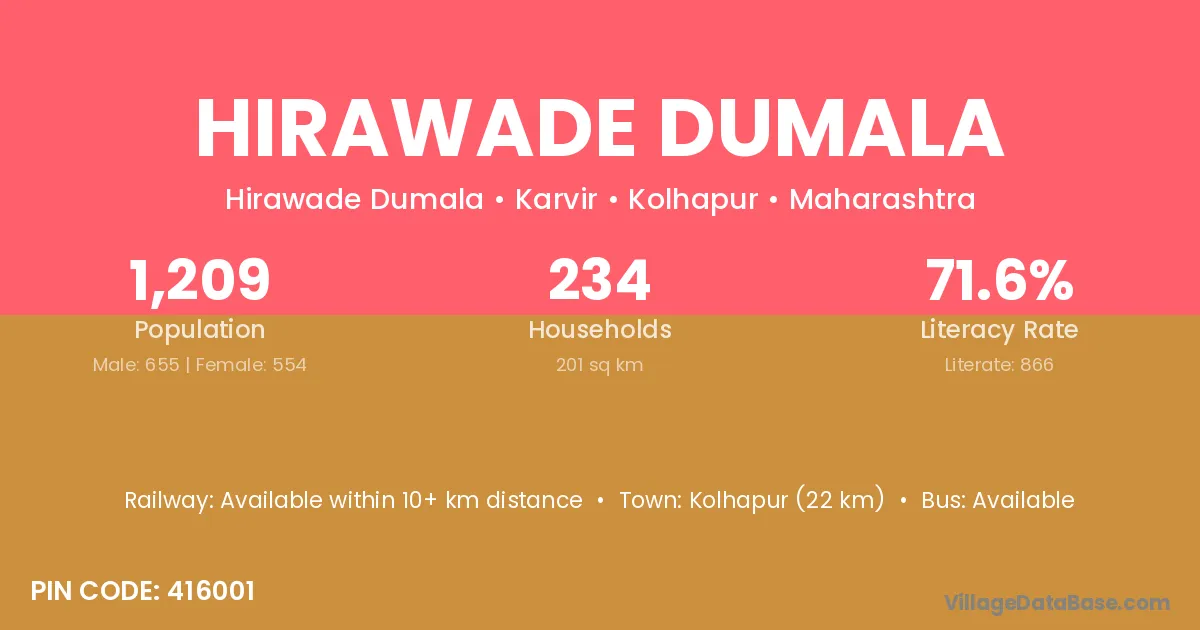 Kolhapur (22 km) is the nearest town to Hirawade Dumala village for major economic activities and is located approximately 22 km away.