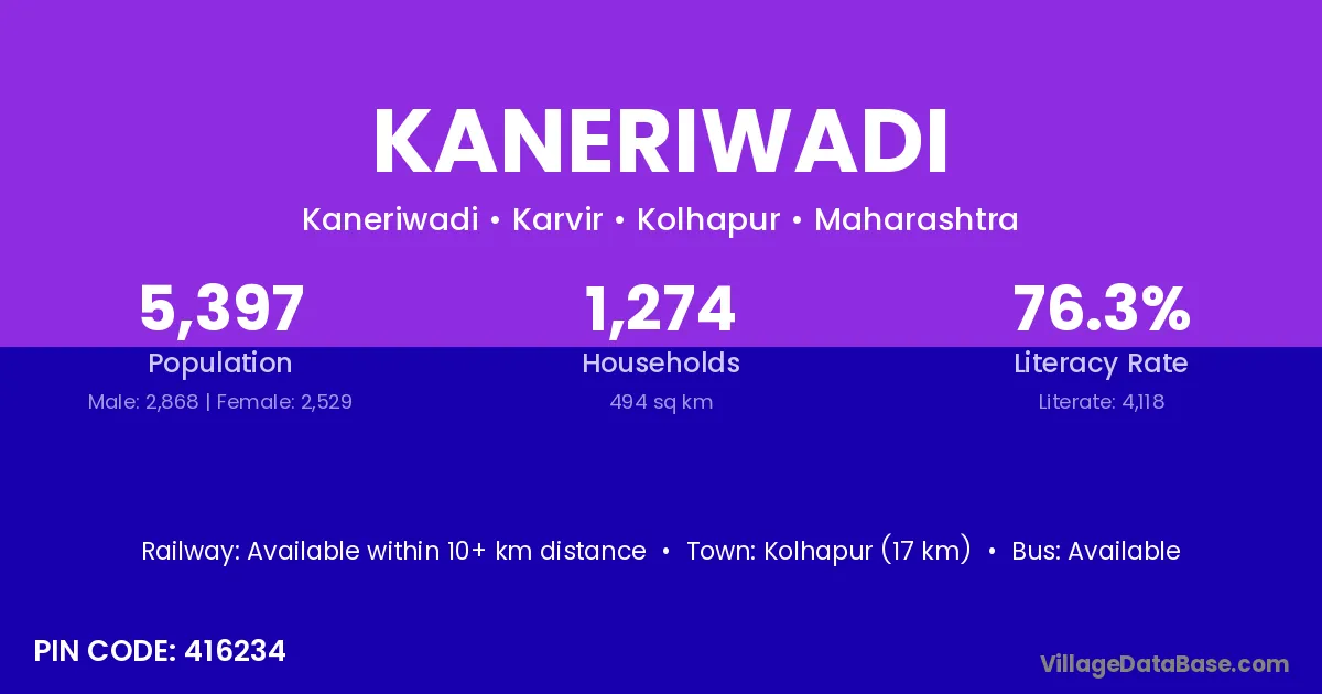 Kolhapur (17 km) is the nearest town to Kaneriwadi village for major economic activities and is located approximately 17 km away.