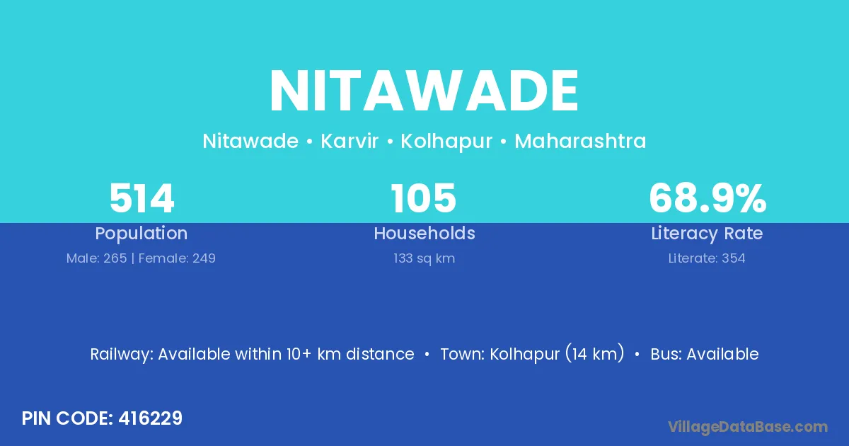 Kolhapur (14 km) is the nearest town to Nitawade village for major economic activities and is located approximately 14 km away.