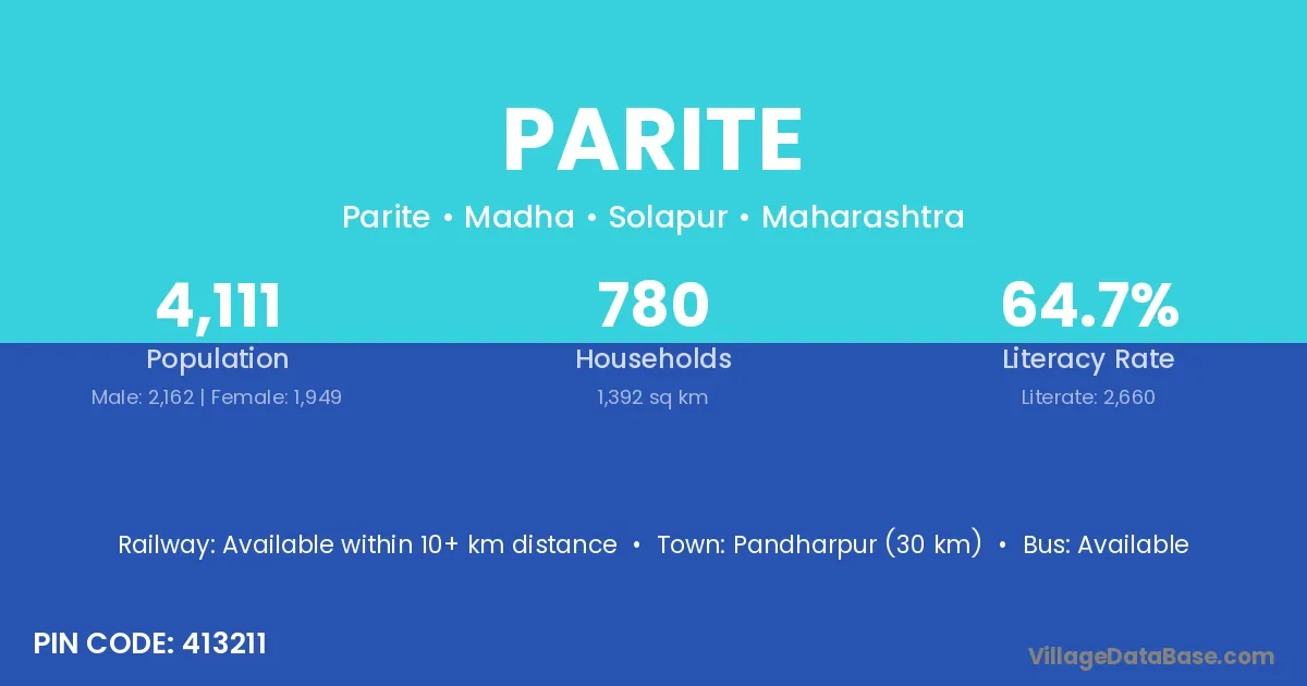 According to Census 2011 information, the village code of Parite village is 416211.
