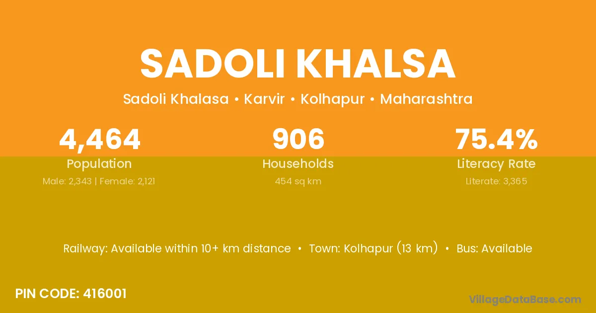 Kolhapur (13 km) is the nearest town to Sadoli Khalsa village for major economic activities and is located approximately 13 km away.