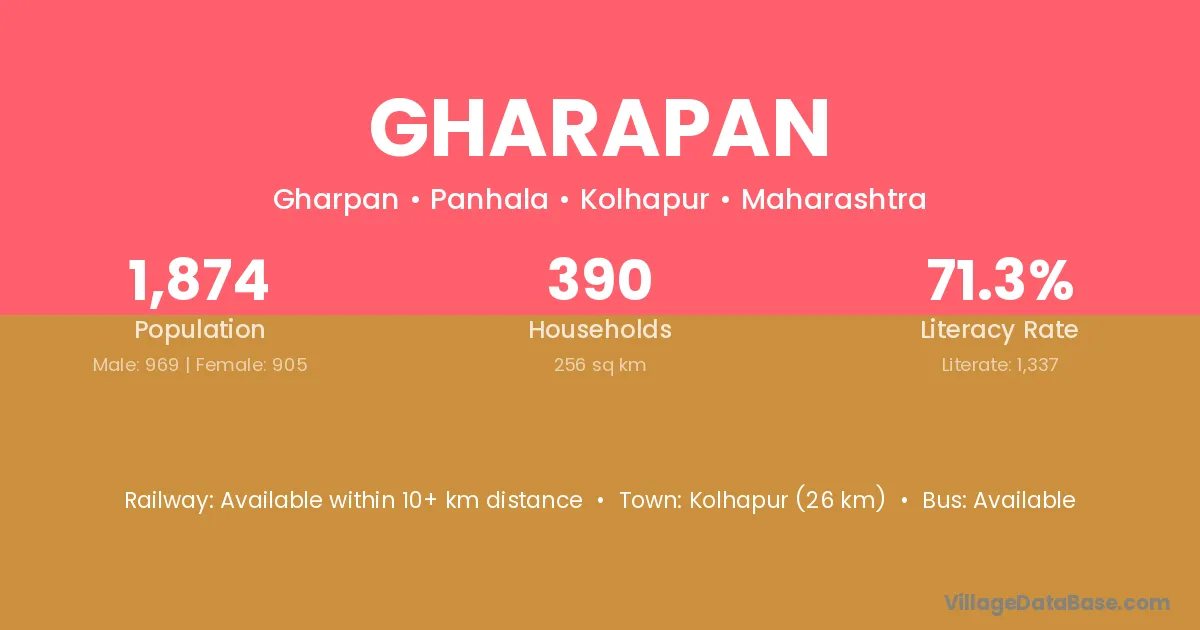 Kolhapur (26 km) is the nearest town to Gharapan village for major economic activities and is located approximately 26 km away.