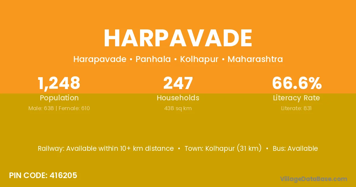 Kolhapur (31 km) is the nearest town to Harpavade village for major economic activities and is located approximately 31 km away.