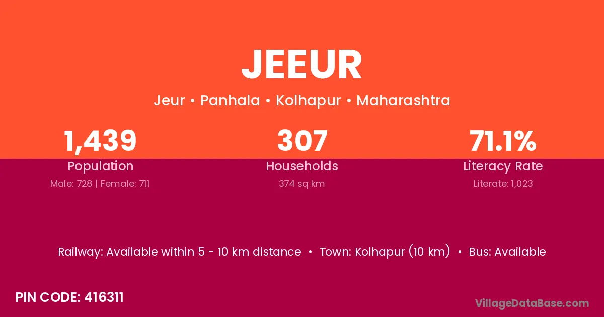 Kolhapur (10 km) is the nearest town to Jeeur village for major economic activities and is located approximately 10 km away.