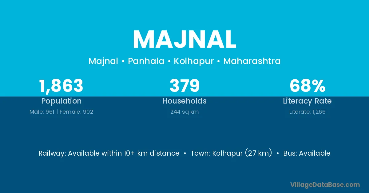 Kolhapur (27 km) is the nearest town to Majnal village for major economic activities and is located approximately 27 km away.
