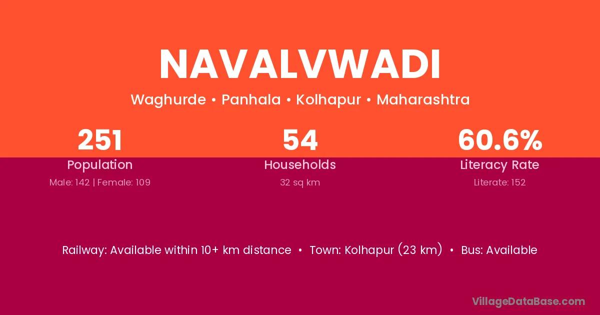Kolhapur (23 km) is the nearest town to Navalvwadi village for major economic activities and is located approximately 23 km away.