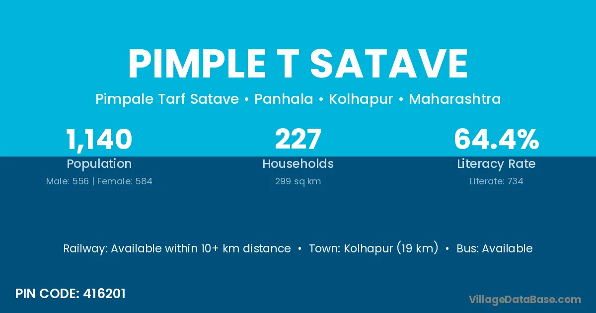 Kolhapur (19 km) is the nearest town to Pimple T Satave village for major economic activities and is located approximately 19 km away.