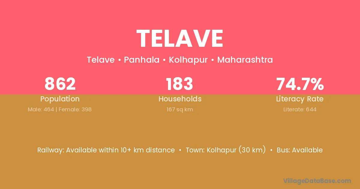 Kolhapur (30 km) is the nearest town to Telave village for major economic activities and is located approximately 30 km away.