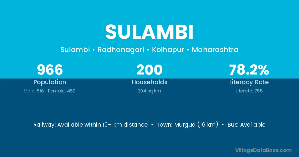 Murgud (16 km) is the nearest town to Sulambi village for major economic activities and is located approximately 16 km away.