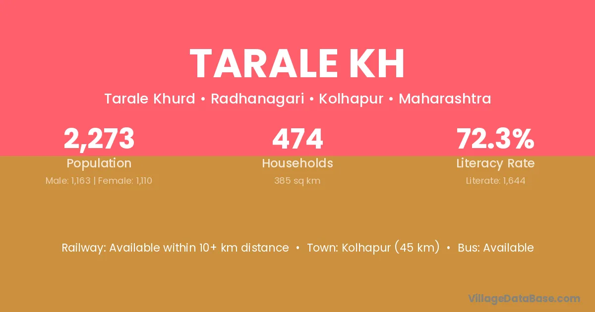 Kolhapur (45 km) is the nearest town to Tarale Kh village for major economic activities and is located approximately 45 km away.