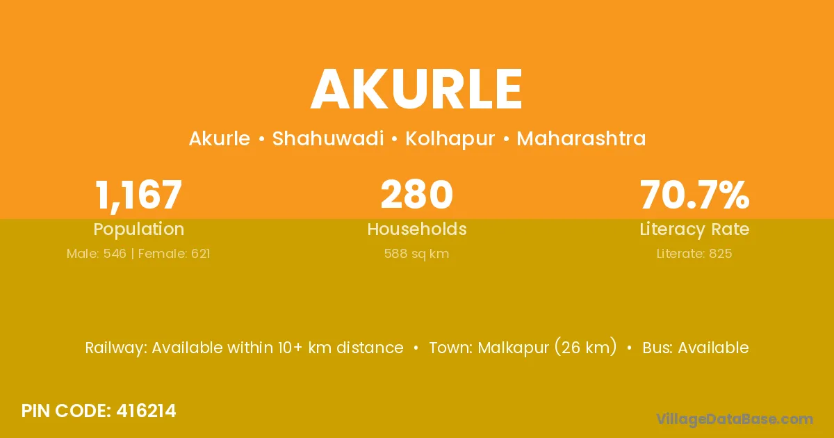 According to Census 2011 information, the village code of Akurle village is 416214.