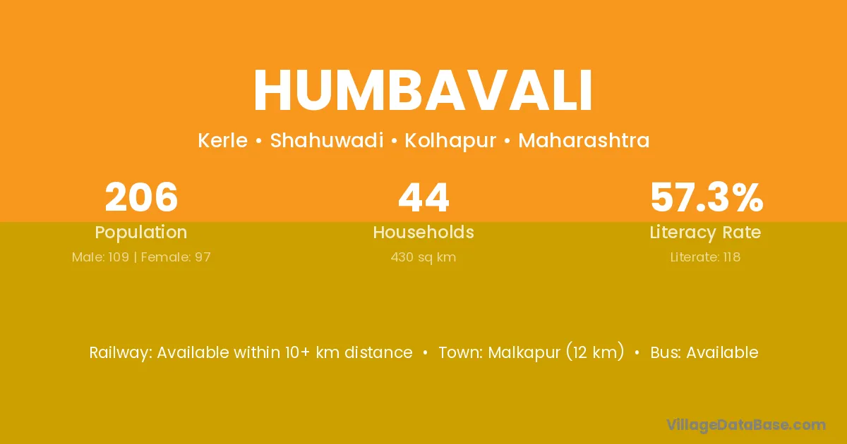 Humbavali village has a total population of 206 people, of which 109 are males and 97 are females.