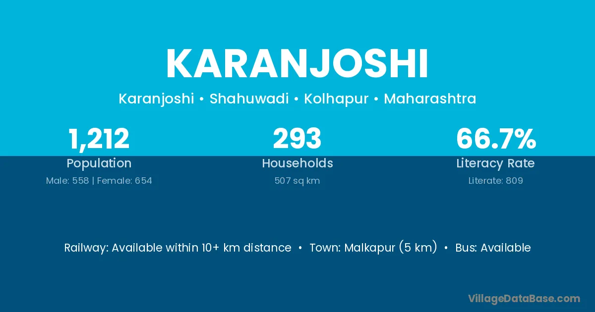 Karanjoshi village has a total population of 1,212 people, of which 558 are males and 654 are females.