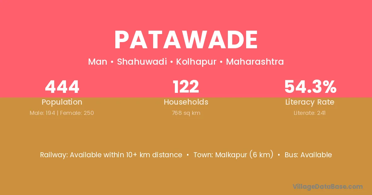 Patawade village has a total population of 444 people, of which 194 are males and 250 are females.