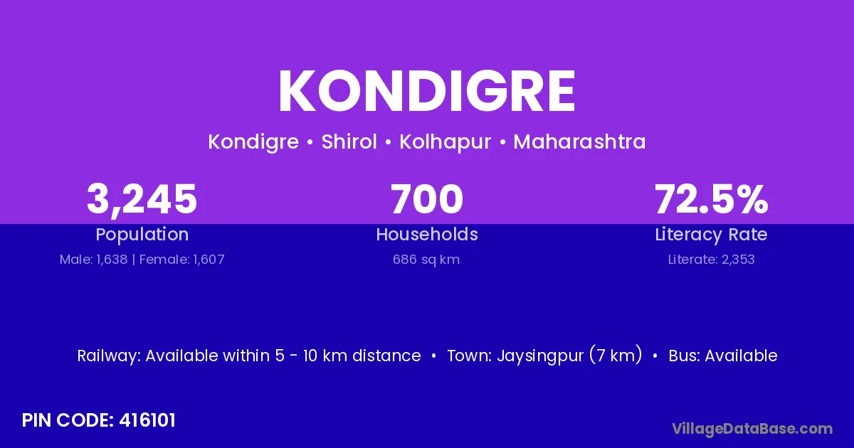 Jaysingpur (7 km) is the nearest town to Kondigre village for major economic activities and is located approximately 7 km away.