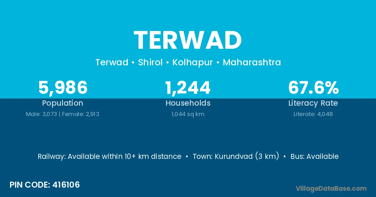 Kurundvad (3 km) is the nearest town to Terwad village for major economic activities and is located approximately 3 km away.