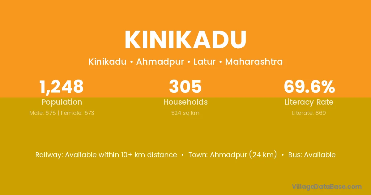 Ahmadpur (24 km) is the nearest town to Kinikadu village for major economic activities and is located approximately 24 km away.