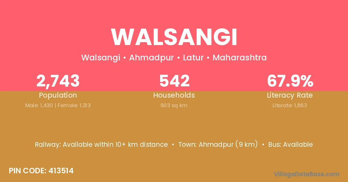 Ahmadpur (9 km) is the nearest town to Walsangi village for major economic activities and is located approximately 9 km away.