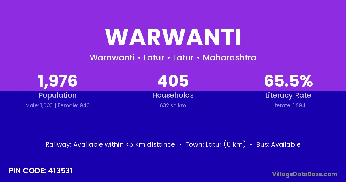 Ahmadpur (8 km) is the nearest town to Warwanti village for major economic activities and is located approximately 8 km away.