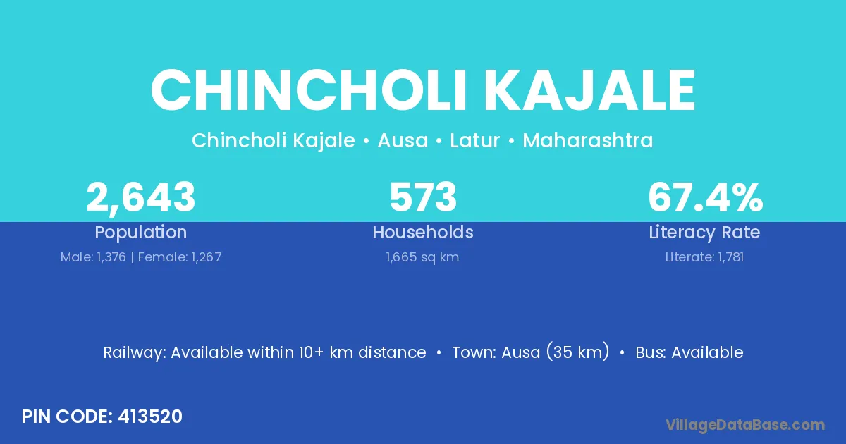 Ausa (35 km) is the nearest town to Chincholi Kajale village for major economic activities and is located approximately 35 km away.