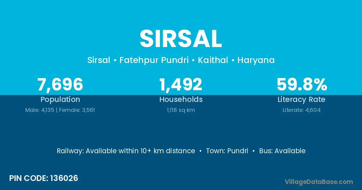 Ausa (22 km) is the nearest town to Sirsal village for major economic activities and is located approximately 22 km away.