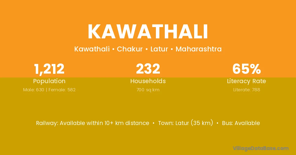 Latur (35 km) is the nearest town to Kawathali village for major economic activities and is located approximately 35 km away.