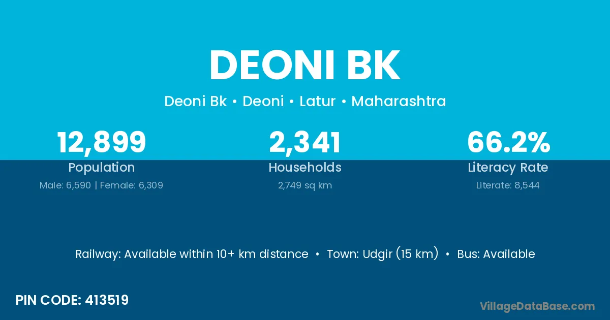 Deoni Bk village has a total population of 12,899 people, of which 6,590 are males and 6,309 are females.