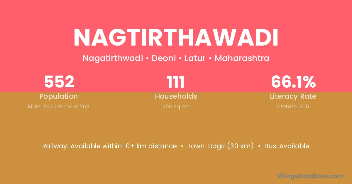 Nagtirthawadi village has a total population of 552 people, of which 283 are males and 269 are females.