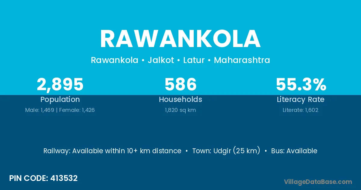 Udgir (25 km) is the nearest town to Rawankola village for major economic activities and is located approximately 25 km away.