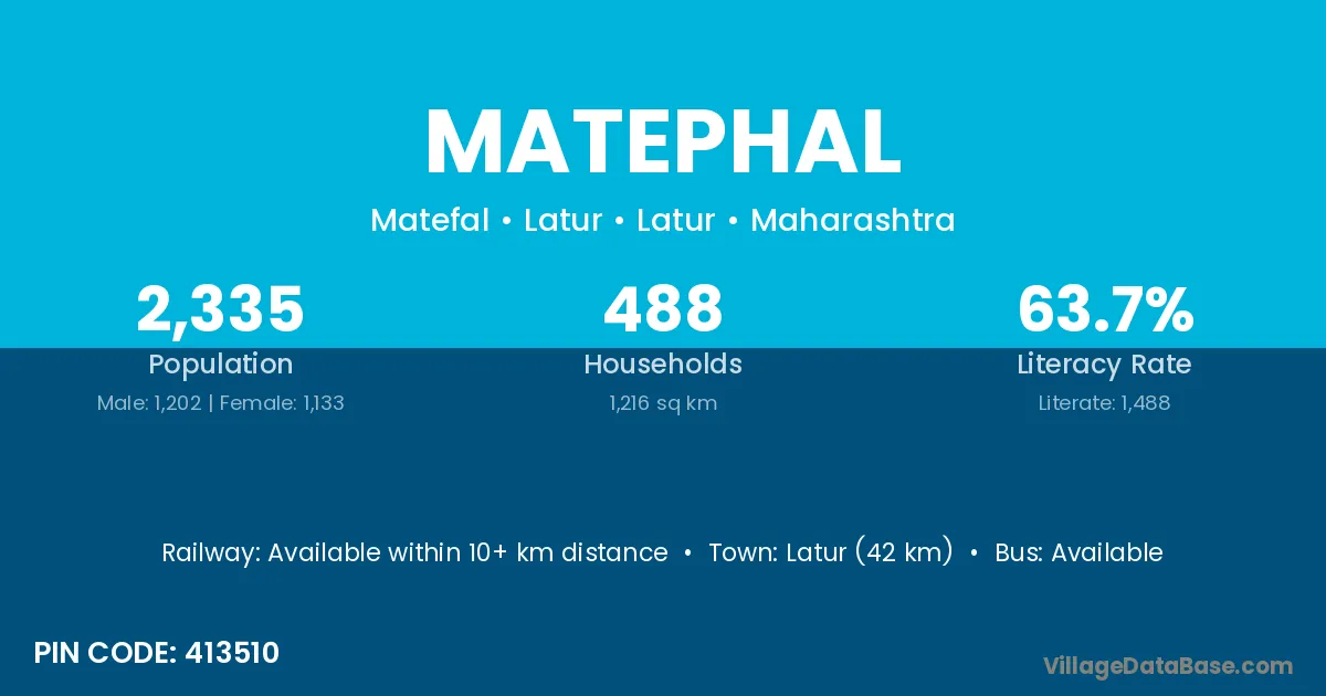 Latur (42 km) is the nearest town to Matephal village for major economic activities and is located approximately 42 km away.