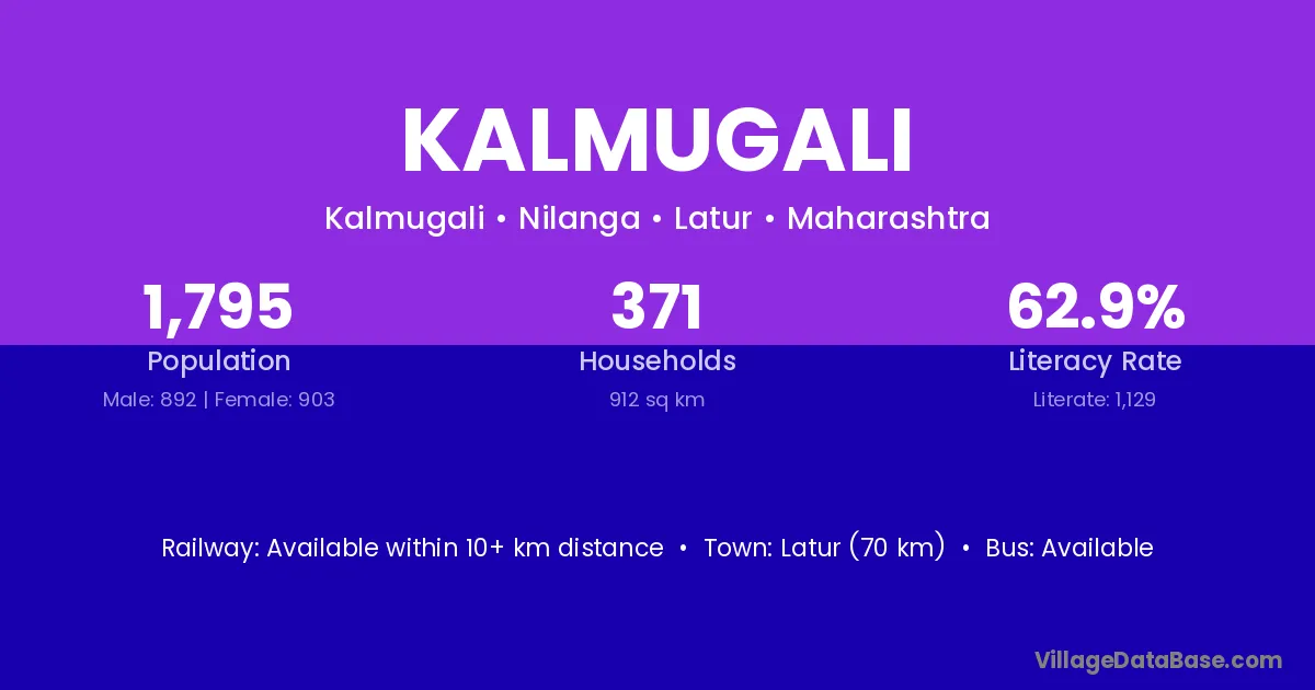Latur (70 km) is the nearest town to Kalmugali village for major economic activities and is located approximately 70 km away.