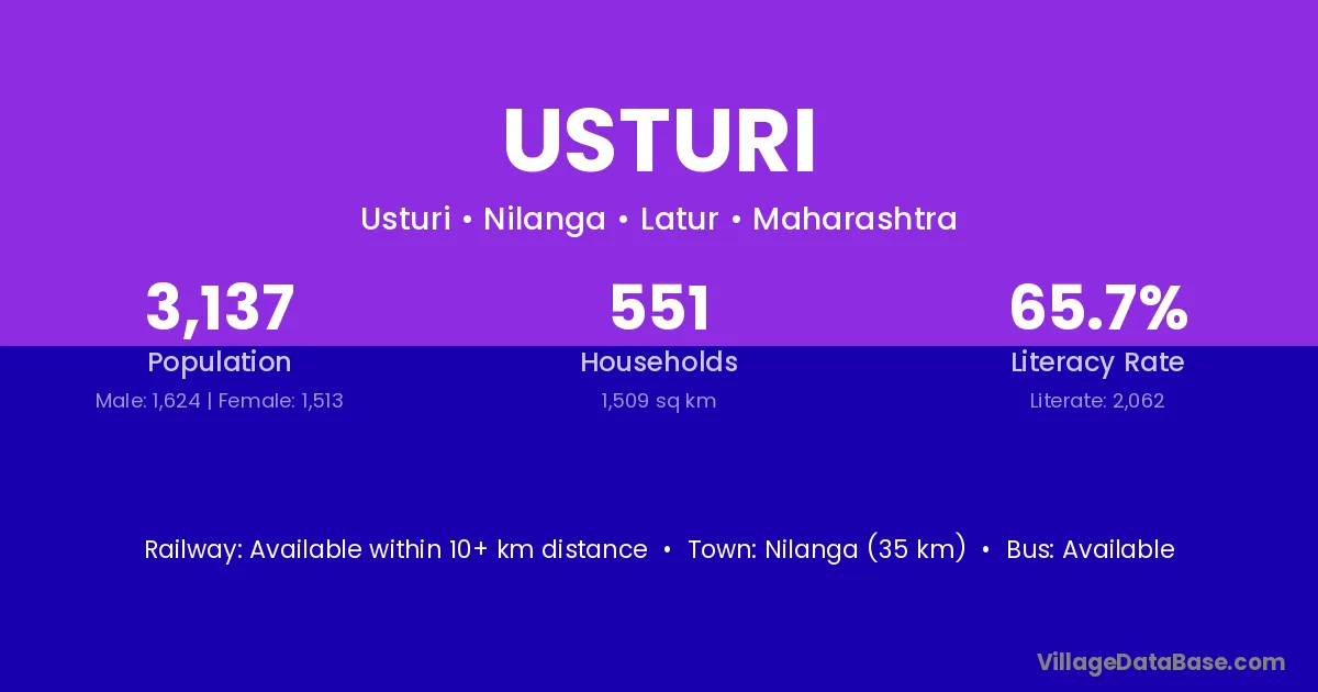 Nilanga (35 km) is the nearest town to Usturi village for major economic activities and is located approximately 35 km away.