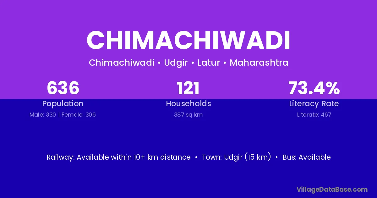 Udgir (15 km) is the nearest town to Chimachiwadi village for major economic activities and is located approximately 15 km away.