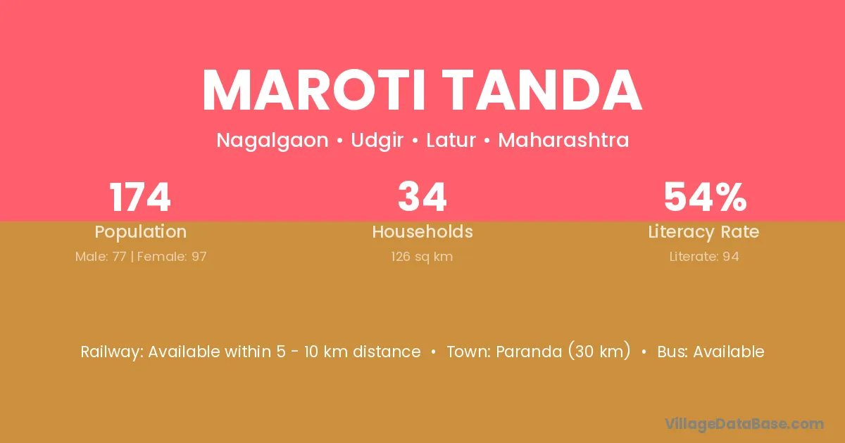 Paranda (30 km) is the nearest town to Maroti Tanda village for major economic activities and is located approximately 30 km away.