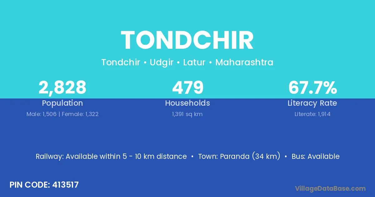 Paranda (34 km) is the nearest town to Tondchir village for major economic activities and is located approximately 34 km away.