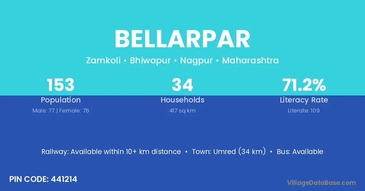 Umred (34 km) is the nearest town to Bellarpar village for major economic activities and is located approximately 34 km away.