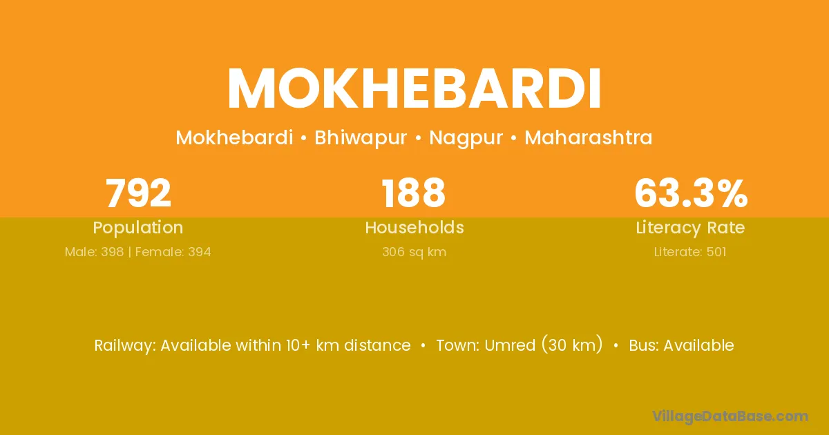 Umred (30 km) is the nearest town to Mokhebardi village for major economic activities and is located approximately 30 km away.