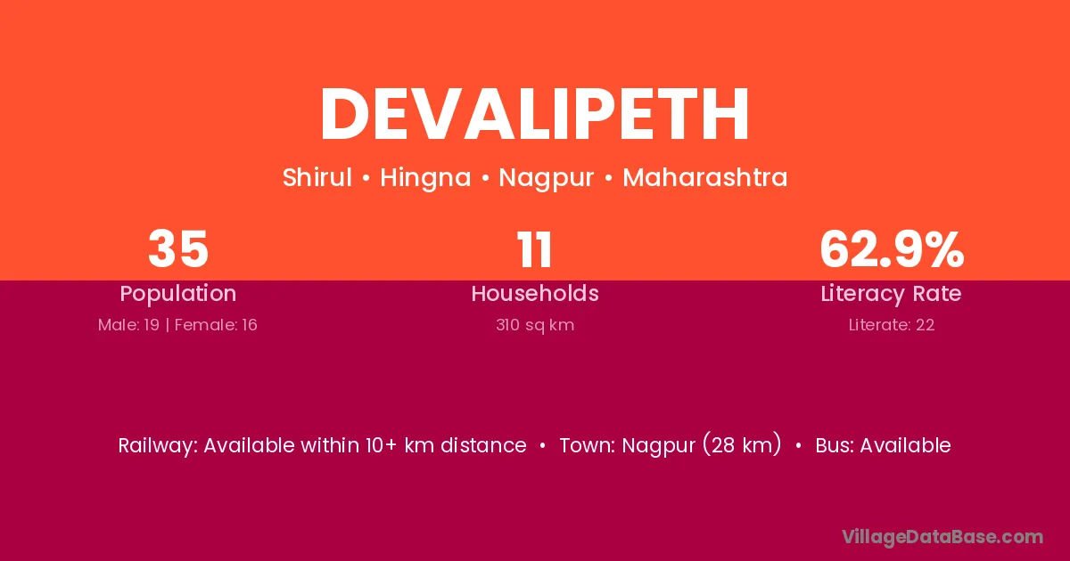 Nagpur (28 km) is the nearest town to Devalipeth village for major economic activities and is located approximately 28 km away.
