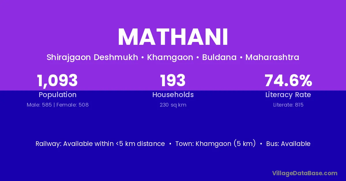 According to Census 2011 information, the village code of Mathani village is 441110.