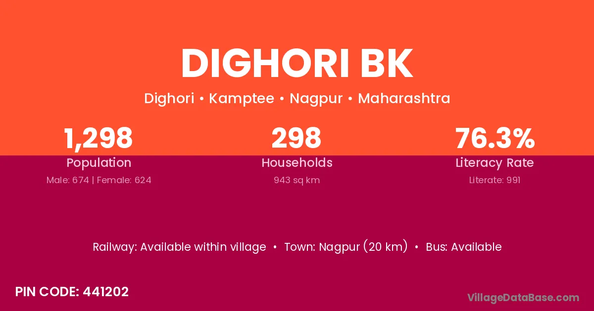 Nagpur (20 km) is the nearest town to Dighori Bk village for major economic activities and is located approximately 20 km away.