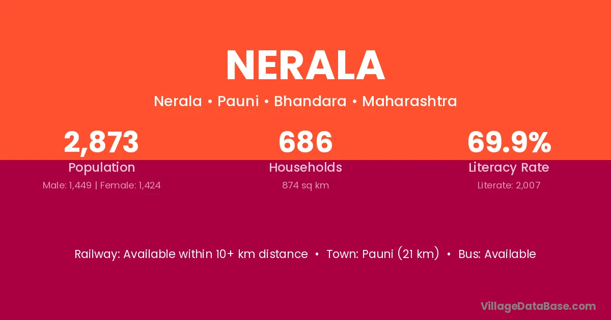 Nagpur (35 km) is the nearest town to Nerala village for major economic activities and is located approximately 35 km away.