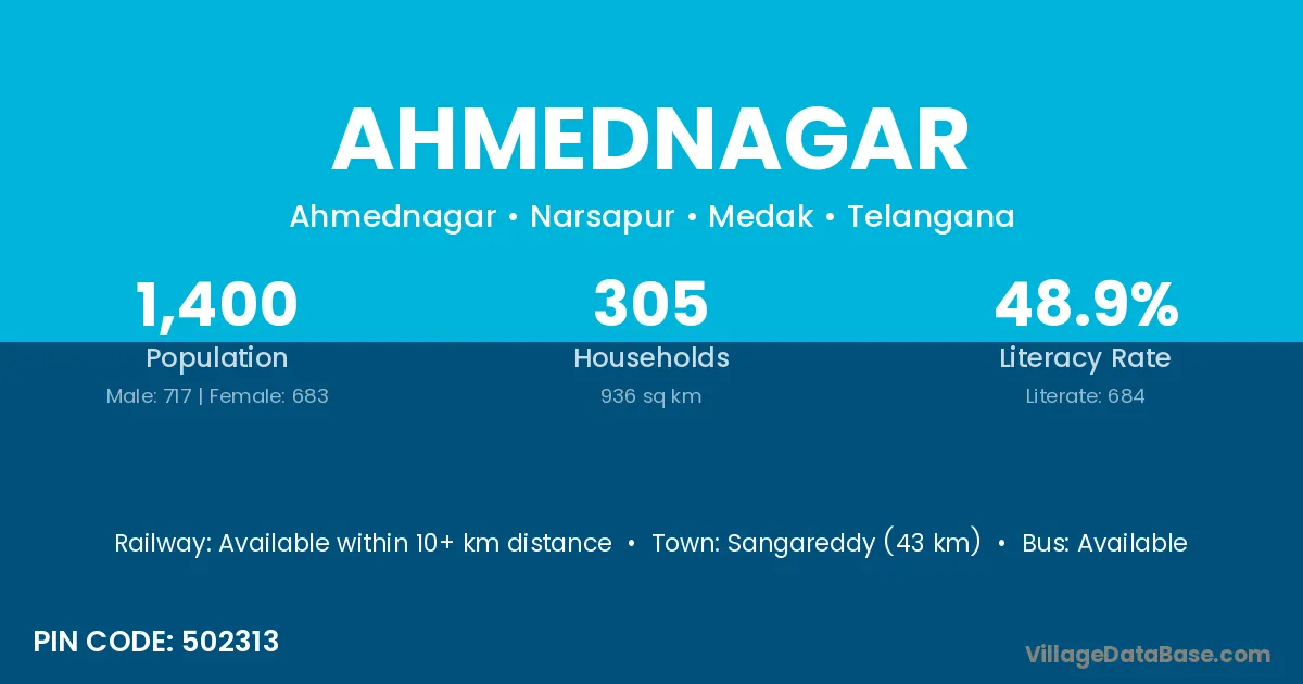 Katol (30 km) is the nearest town to Ahmednagar village for major economic activities and is located approximately 30 km away.
