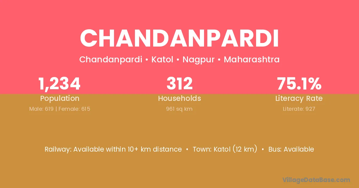 Katol (12 km) is the nearest town to Chandanpardi village for major economic activities and is located approximately 12 km away.