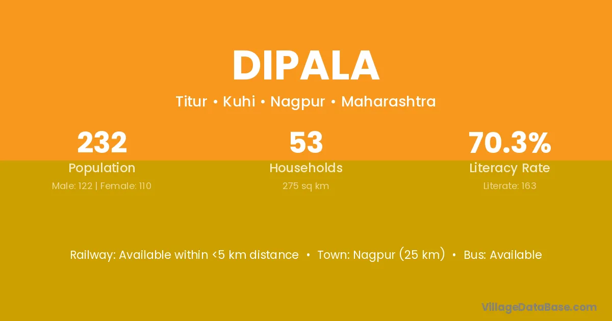 Nagpur (25 km) is the nearest town to Dipala village for major economic activities and is located approximately 25 km away.