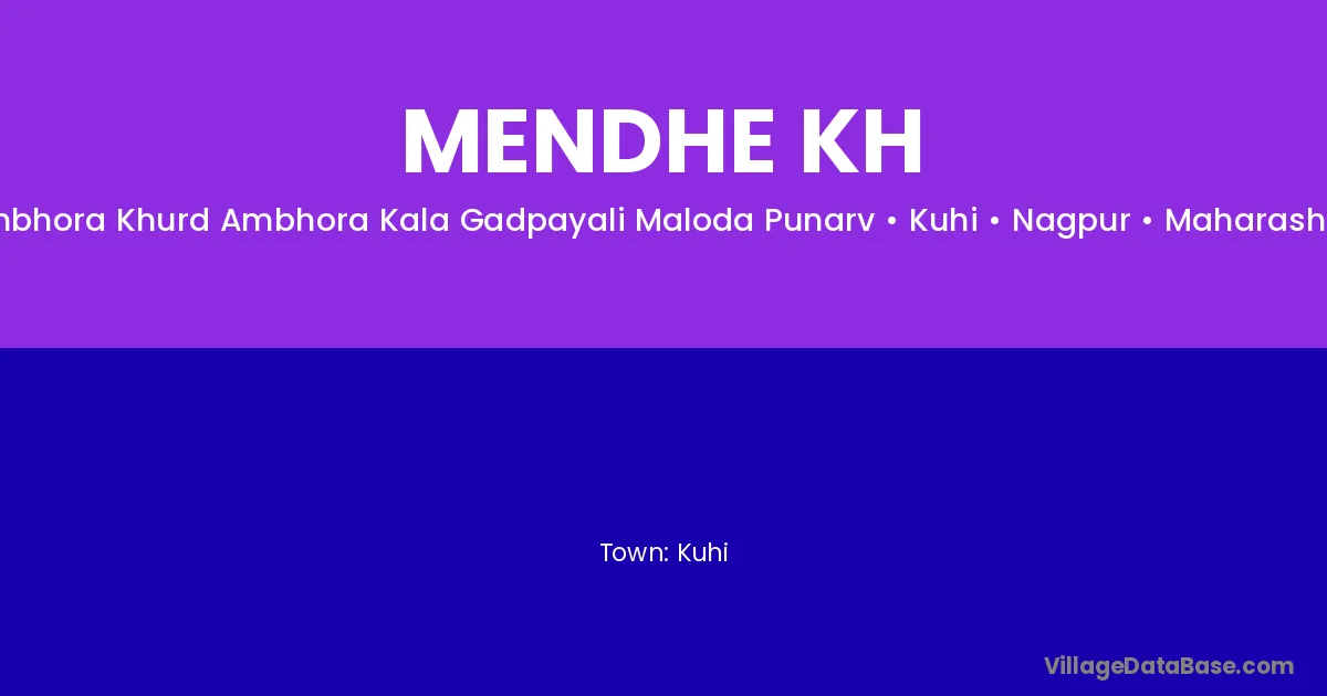 Kuhi is the nearest town to Mendhe Kh village for major economic activities
