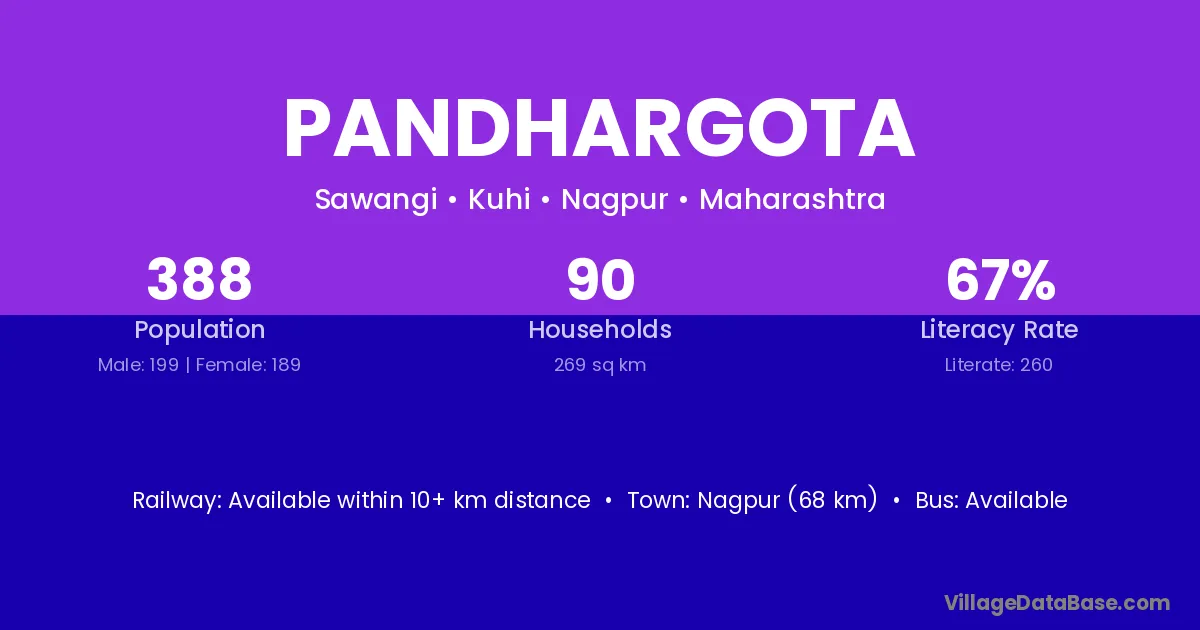 Nagpur (68 km) is the nearest town to Pandhargota village for major economic activities and is located approximately 68 km away.