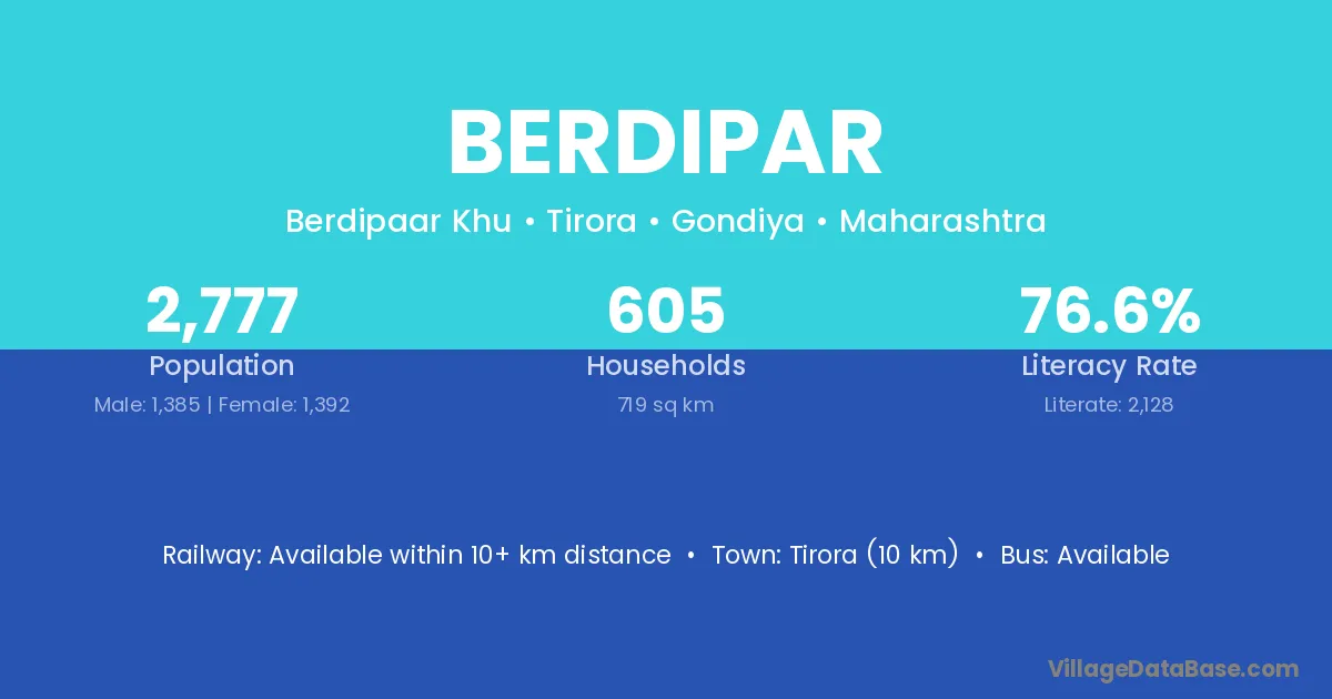 Ramtek (18 km) is the nearest town to Berdipar village for major economic activities and is located approximately 18 km away.