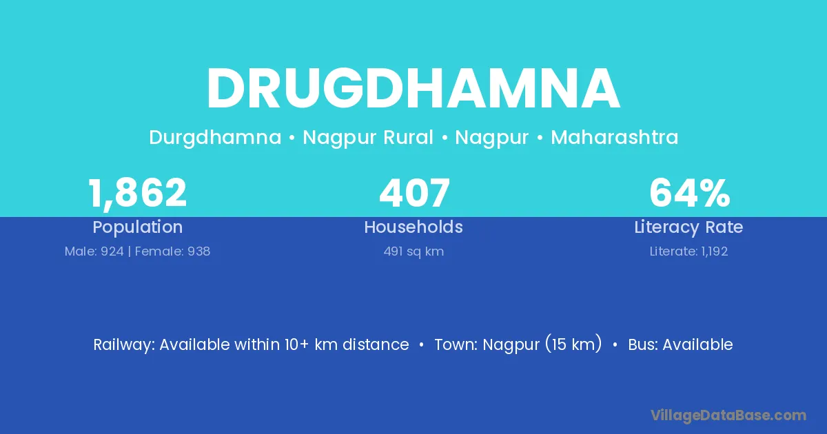Nagpur (15 km) is the nearest town to Drugdhamna village for major economic activities and is located approximately 15 km away.