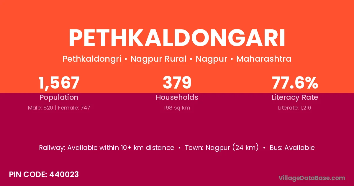 Nagpur (24 km) is the nearest town to Pethkaldongari village for major economic activities and is located approximately 24 km away.