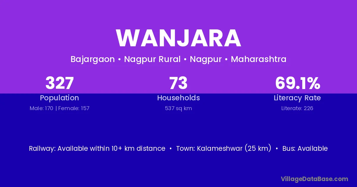 Kalameshwar (25 km) is the nearest town to Wanjara village for major economic activities and is located approximately 25 km away.